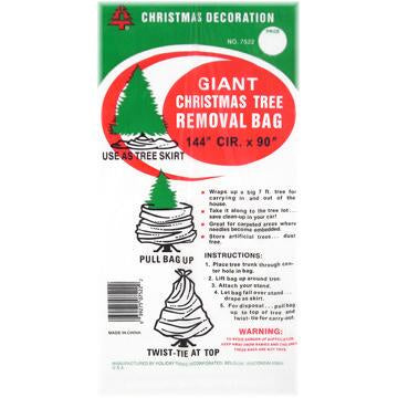 Simply place the tree trunk through a hole in the center of the bag, lift the bag up around your tree and attach the stand. Than let the bag fall and drape as a tree skirt. When ready to dispose, simply pull the bag back up and twist tie for easy carry-out!